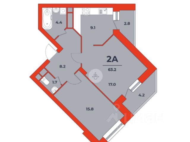 - Две просторные раздельные комнаты площадью 16,8 метров и 15,7 метра