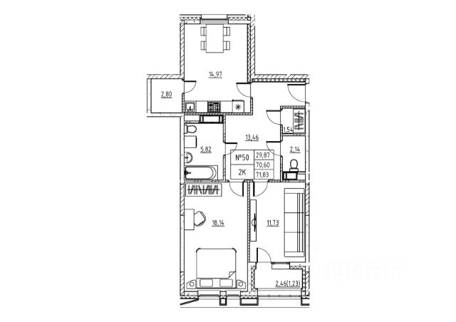 квартиры 61,99 м2 из 73,5 м2, собственник оставшейся площади 11,42 м2 пока свою часть продавать не собирается, может быть