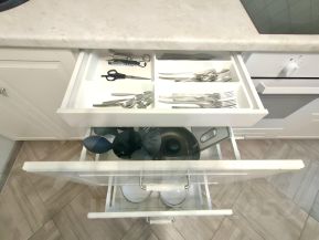 Кухня полностью укомплектована для приготовления еды: набор посуды, встроенный фильтр питьевой воды, чайник, СВЧ, духовка, 2-створчатый холодильник с морозильной, чай/кофе.