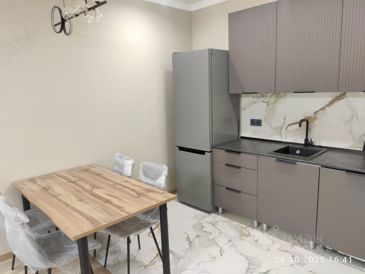 Квартира полностью укомплектованы мебелью (большой и вместительный шкаф-купе в прихожей, кровать 160см и шкаф для хранения одежды, диван в гостиной и полноценная кухня), куплена вся необходимая бытовая техника (стиральная машина, встроенная посудомоечная машина, холодильник, варочная поверхность и духовой шкаф), дополнительно установлен кондиционер.