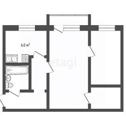 Двухкомнатная квартира площадью 42.4 м² расположена на третьем этаже кирпичного четырехэтажного дома в благоустроенном районе левого берега Дубны. Планировка отличается рациональностью: смежные комнаты, жилая площадь 28 м²( 10.12 м² и 18 м²), а также наличие кладового помещения, которое можно функционально переоборудовать под гардеробную. Балкон застеклённый, санузел совмещённый, кухня 6 м².