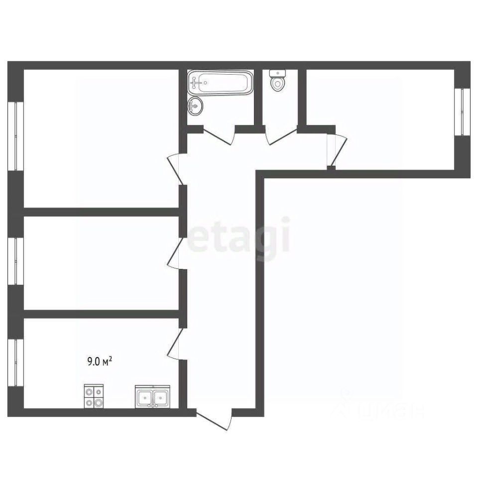 Общая площадь квартиры 61,7, жилая площадь 38 кв.м
