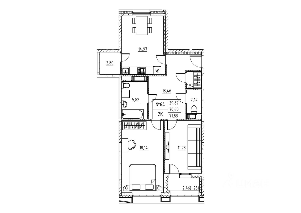Продаётся 2-комнатная квартира в строящемся доме (Бруно), срок сдачи: IV-кв. 2026, общей площадью 73.06 кв.м., на 5 этаже. Новый жилой дом от застройщика "ВЭМЗ-ЭСТЕЙТ" расположен по адресу: Московская область, Дубна, микрорайон Чёрная Речка