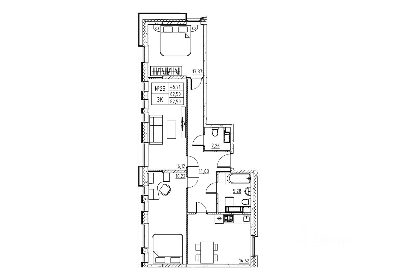 3-комн. квартира, 82,5 м²