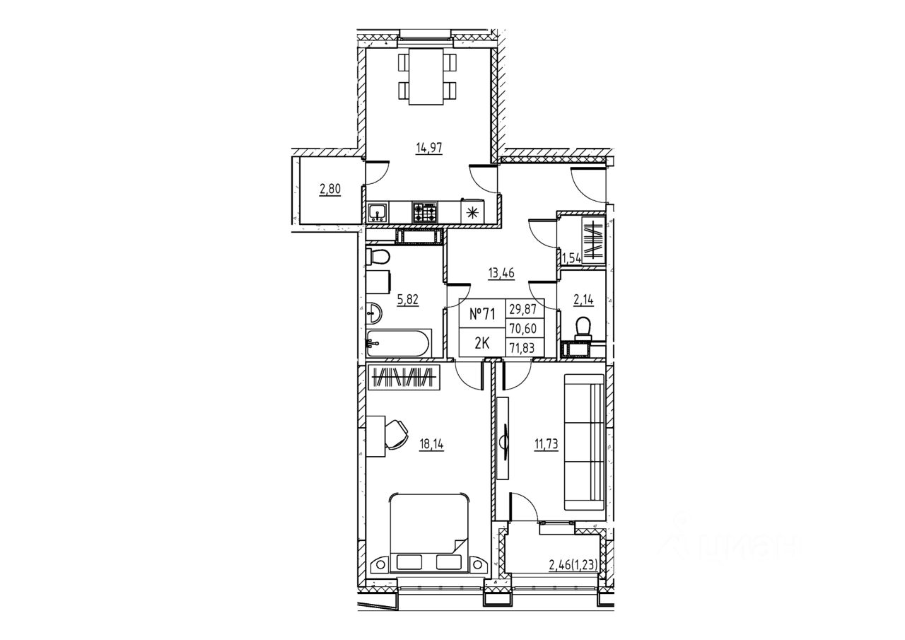 Продаётся 2-комнатная квартира в строящемся доме (Бруно), срок сдачи: IV-кв. 2026, общей площадью 73.06 кв.м., на 6 этаже. Новый жилой дом от застройщика "ВЭМЗ-ЭСТЕЙТ" расположен по адресу: Московская область, Дубна, микрорайон Чёрная Речка