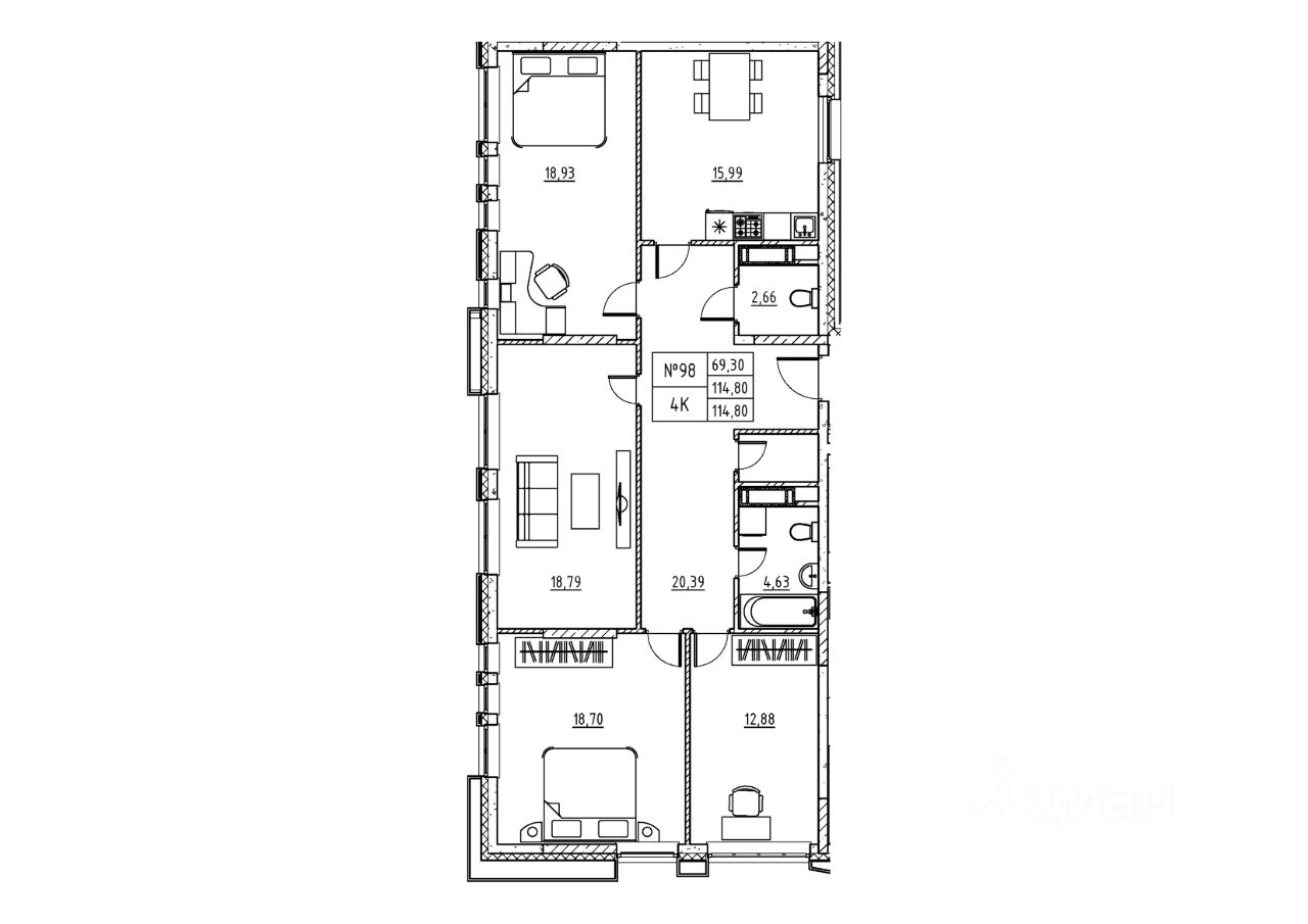 4-комн. квартира, 114,8 м²