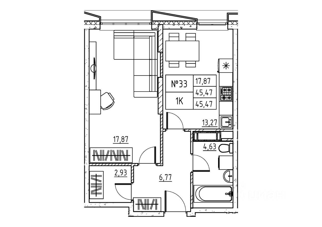 45,46 м²