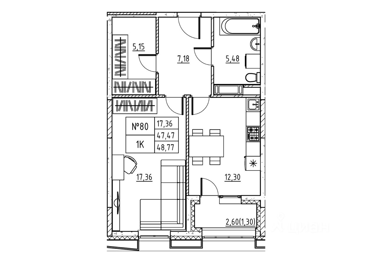 1-комн. от 44,01 м²