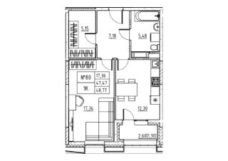 1-комн. квартира, 50,07 м²