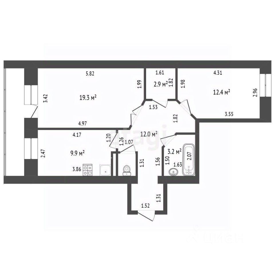 Комнаты 19,3/12,4 м.кв.