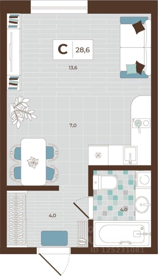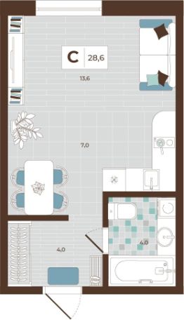 28,6 м²