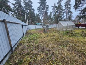 Угловой участок (соседи только с двух сторон), асфальтированный подъезд, городские коммуникации по границе участка (газ, электричество, вода).