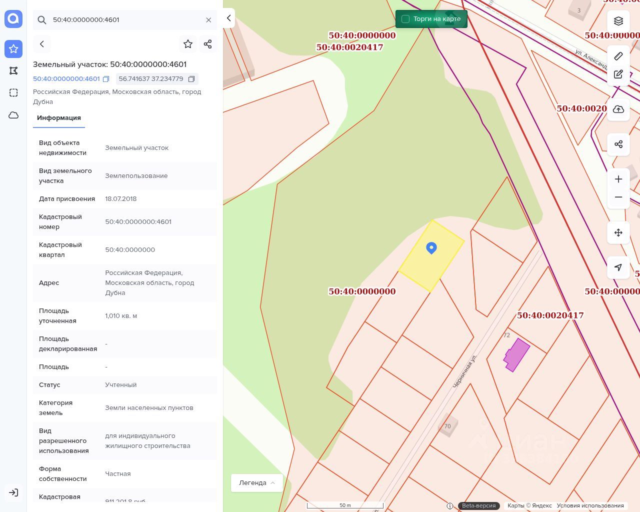 Участок выделяется из 10 cоток с кадастровым номером 50:40:0000000:4601.