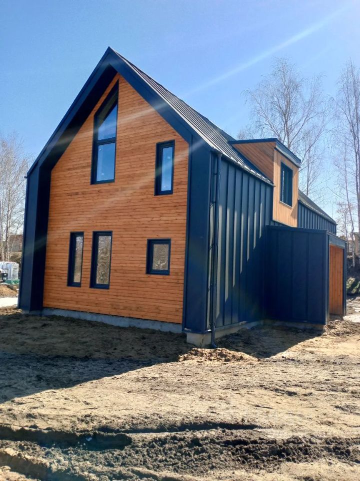 Стены оштукатурены, выровнены и подготовлены к финишной отделке. На двух этажах выполнена стяжка для укладки напольного покрытия. Обрешетка потолка на втором этаже дома зашита ОSВ плитами. В санузле установлена сантехника (унитаз, раковина).