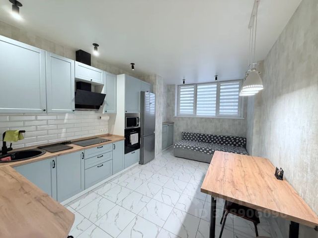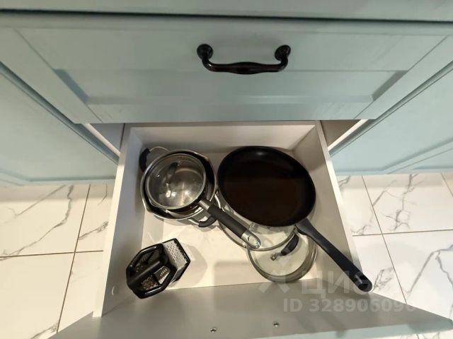 Комфортная кухня с полным набором предметов для готовки и посудомоечной машиной