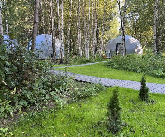 Глэмпинг "Озеро Ле" находится в городе Дубна, в 5 минутах ходьбы от Лебяжьего озера, на стыке трасс ВЕЛО1 и Дубнинской кругосветки. Добраться до Озера Ле можно на машине по Дмитровскому шоссе, электропоезде от Савеловского вокзала до станции Большая Волга и автобусе. Остановка и вокзал расположены всего в нескольких минутах ходьбы от глэмпинга. Расстояние до Москвы - 130 километров. К услугам гостей предлагаются 10 сфер с возможностью заселения 2 гостей на основных местах. В каждом из вариантов есть кухня с посудой и кухонными принадлежностями, микроволновкой, чайником, холодильником, Wi-Fi, фен, собственная ванная комната с душевой кабиной и санузлом. Для комфортного проживания предоставляются косметические средства для душа, постельное белье и полотенца. Общая площадь Малой сферы - 38 кв.м, Большой сферы - 50 кв.м. Из каждого домика открывается вид на лес. На территории базы есть место для прогулок и рыбалки на озере. В распоряжении гостей находится площадка с костровой чашей, беседкой. По запросу предоставляется мангал, садовая мебель. Гости могут воспользоваться услугами бани и чанами на открытом воздухе. Также в прокат предоставляются велосипеды, сап-борды. Для детей обустроена детская площадка. Доступен аэрохоккей, настольный теннис, бадминтон, при предварительном бронировании доступна волейбольная площадка. Отдельно можно арендовать лодку и велосипеды. Для гостей базы отдыха предоставляется парковка. Питание может быть организовано по запросу. Также доступны службы доставки кафе и ресторанов, расположенных вблизи глэмпинга. Сфера с большим панорамным окном. В номере двухспальная кровать размера king size, прикроватные тумбы с usb-зарядкой, журнальный столик со стульями. В обособленной зоне расположена кухня с микроволновой печью и посудой, мини-холодильник. В санузле имеется фен, в некоторых номерах зеркало с подсветкой. Для комфортного проживания предоставляются косметические средства для душа, постельное белье и полотенца.