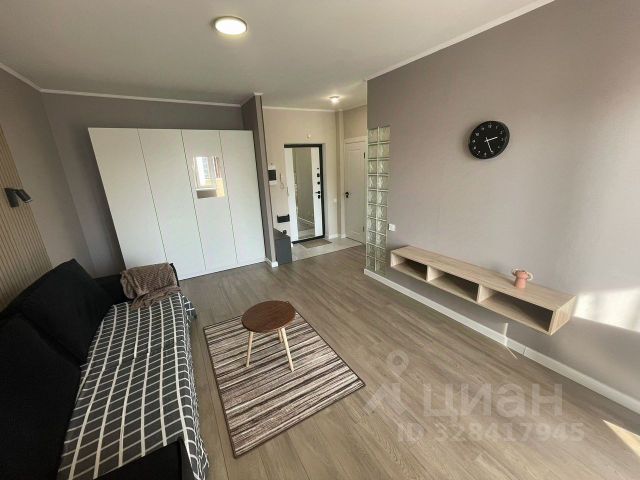 Планировка: коридор, кухня, комната с гардеробной, санузел совмещенный.