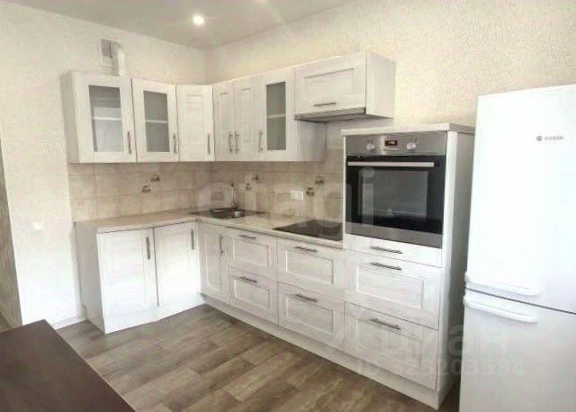 Квартира просторная, теплая, уютная, установлен кухонный гарнитур, холодильник, электроплита, вытяжка, духовой шкаф, стол, стулья, диван-кровать, встроенный шкаф.
